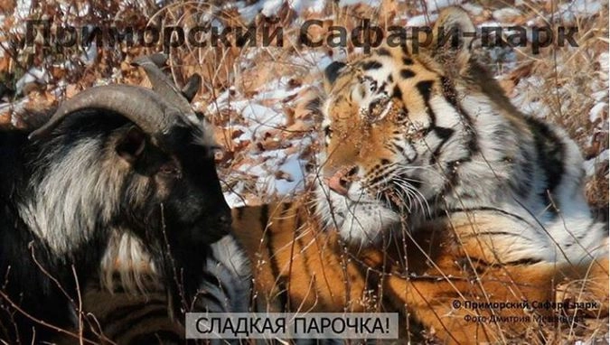 Неразлучная парочка из Приморского сафари-парка обзавелась аккаунтом еще в одной социальной сети. После «Одноклассников» и «ВКонтакте» хищник с копытным зарегистрировались в Instagram. Администрация парка выкладывает здесь самые запоминающиеся фотографии Амура и Тимура. За дружбой Амура и Тимура страна наблюдает с 26 ноября. Козлика прислали тигру в качестве еды, но он повел себя довольно дерзко, и оторопевший хищник не стал его есть. Однако ученые считают, что дружба продлится до того момента, пока козел не вспомнит, что он жертва. Но пока бесстрашный Тимур как будто поменялся с тигром ролями: например, во время снегопада он вынудил Амура уйти из убежища и занял его сам.