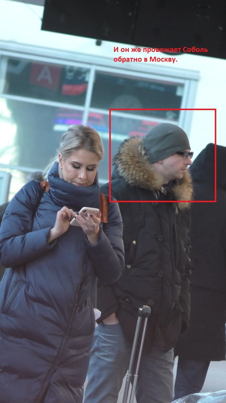 Этот загадочный мужчина «засветится» в кадре с Соболь еще раз — снова на вокзале, куда отвез провожать юриста ФБК.