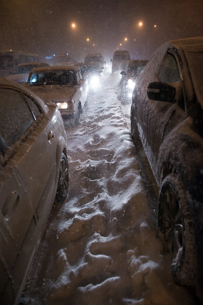 Многочасовые автомобильные пробки, задержка и отмена рейсов в аэропорту, гололёд и практически 0 видимость – последствия сильнейшего снегопада непрекращающегося в течении суток. Снегопад сопровождается сильным морозом, температура не поднимается выше -15 градусов.