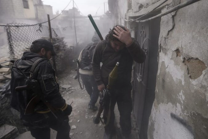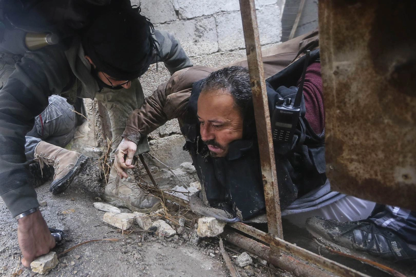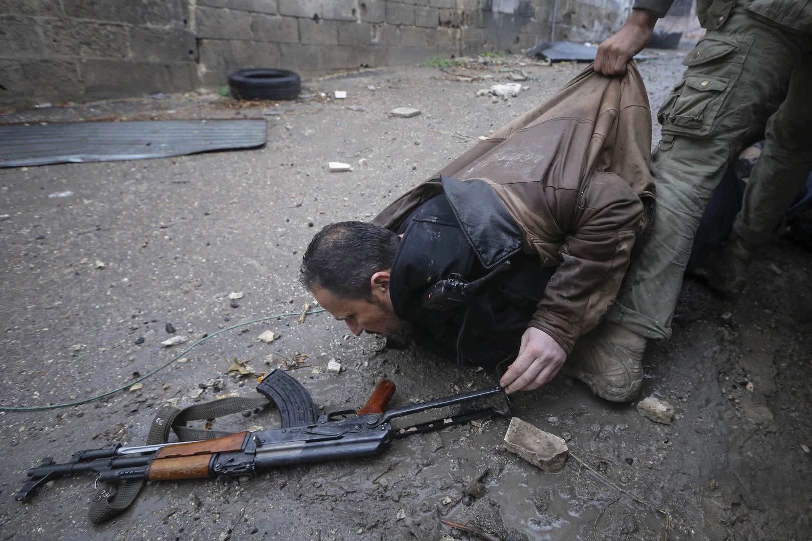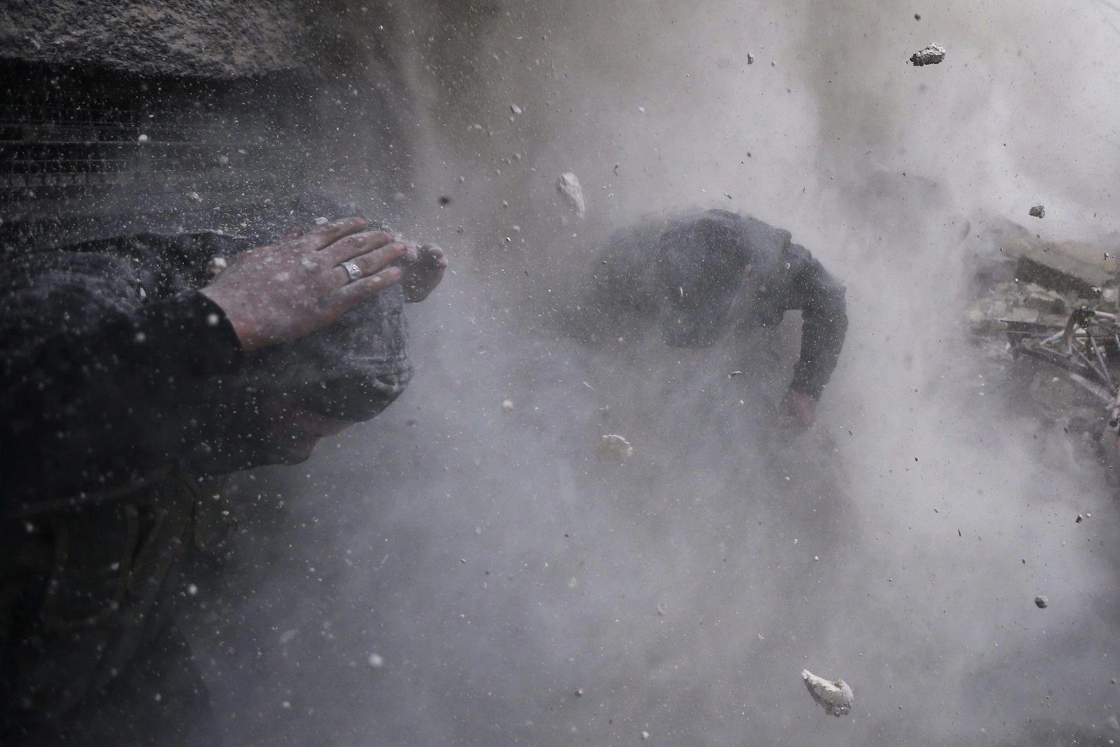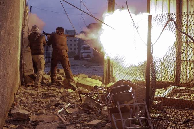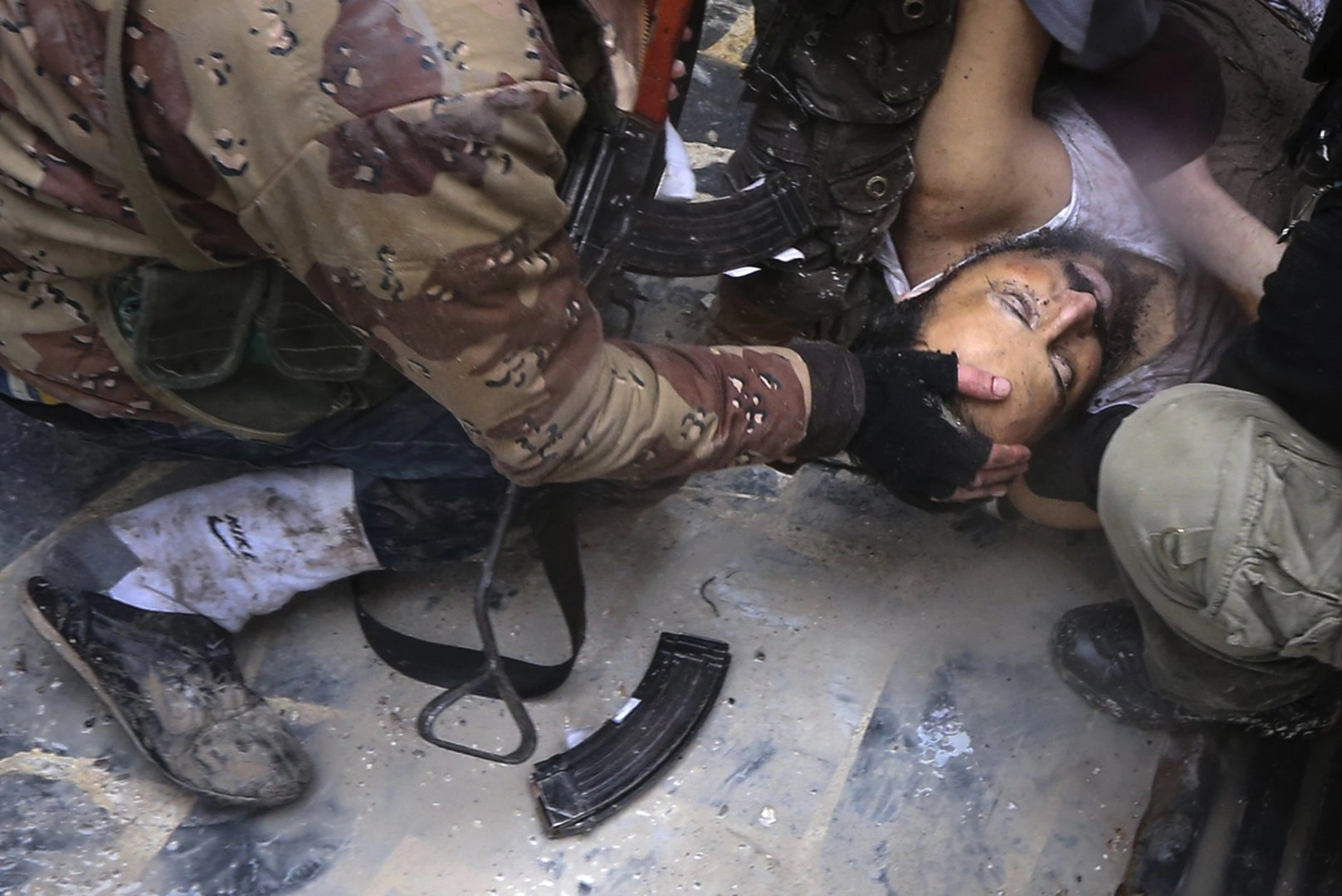 Первое место в категории «Горячие новости» - Горан Томашевич. Серия из 12 снимков рассказывающих о сирийских боевиках, готовящихся к нападению на правительственную армию. В самом начале их командир оказывается раненым снайпером. Его товарищи уносят его с поля боя. Вернувшись, они попадают под танковый обстрел. Стена, из-за которой они вели обстрел, взрывается и становится облаком осколков и бетонной пыли. Дождавшись, пока пыль осядет, они возвращаются к командиру, но он уже мёртв.