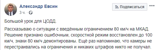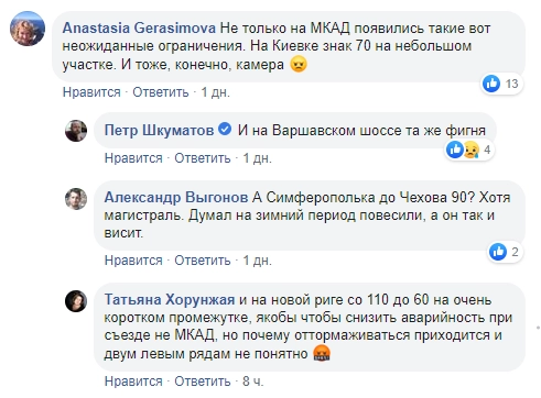 Мною поставлен вопрос о выравнивании всех скоростных режимах на всех московских дорогах. Ситуация когда дорога остаётся прежней, а максимальная скорость необъяснимо меняется + контролируется камерой — недопустима и ведёт к абсолютному недоверию водителей к органам власти, — пишет замруководителя ЦОДД.
