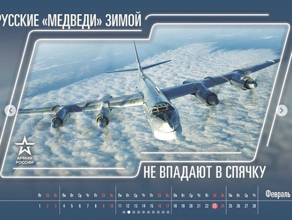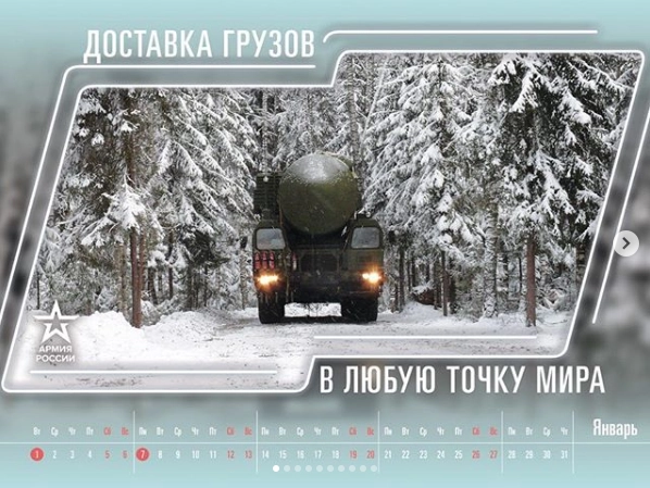 К примеру, на «январскую» страницу поместили зенитный ракетный комплекс на заснеженной дороге с подписью «Доставка грузов в любую точку мира». На «февральскую» — бомбардировщик Ту-95 «Медведь» и подпись «Русские медведи зимой не впадают в спячку».