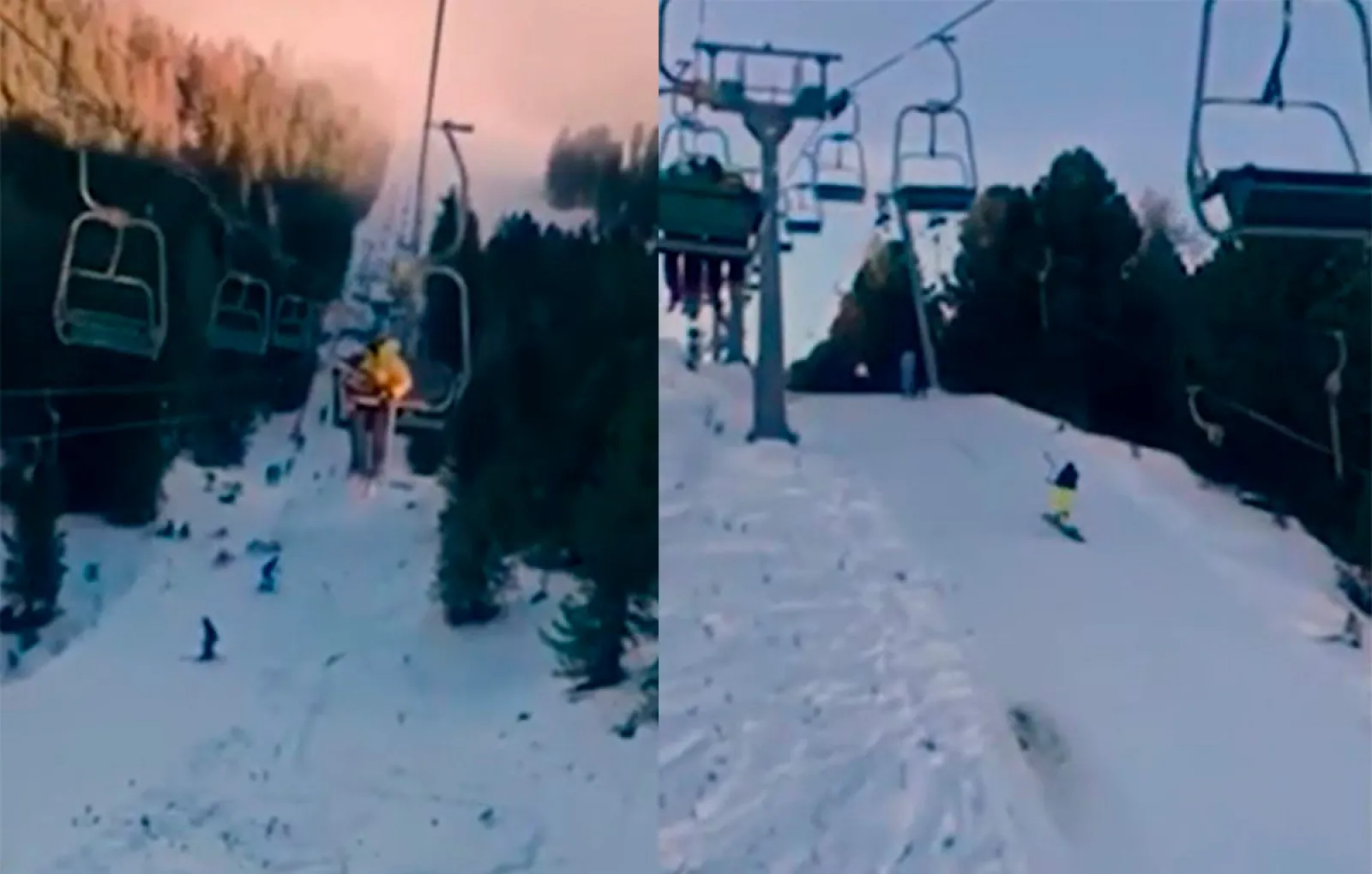 В Сети распространяется видеоролик, на котором спортсмен-сноубордист в панике летит вниз по трассе горнолыжного курорта, сметая на своём пути всё и вся.