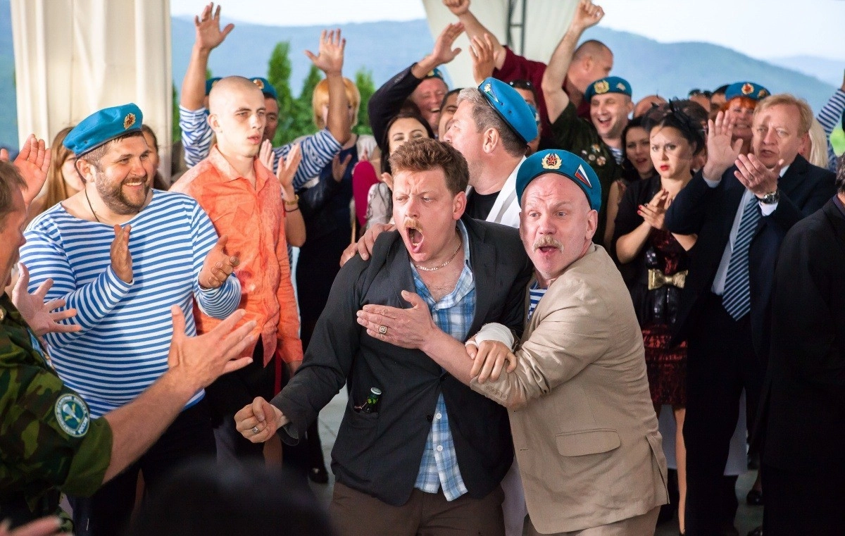 Отчасти удаются и многочисленные референсы на тему кино — от поклона одному из продюсеров фильма в виде могильного кургана, как в ролике про Тамерлана (плюс совет оператору: «Ну, а ты, Бекмамбетов, купи штатив»), до «Легенды № 17», которую Борис Иванович приводит в пример несущим его родственникам. Умиляет своей наивностью «Дарт Вейдер», катающийся на аттракционах и вступающий в драку с сочинскими зайкой и леопардом, а потом вовремя выдающий: «Это я, твой отец». Тешит глаз самоцитата со знакомой нам «свадебной» аллейкой, по которой под ту же мелодию проносят теперь гроб. Радуют музыкальные приветы «Кин-дза-дзе» и «Неуловимым мстителям» (саундтрек вообще заметно расширен и включает не только прежние песни, но, среди прочего, «Gangnam Style», «Рюмку водки на столе» и «Айсберг»).
