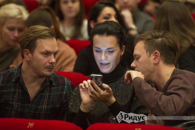Режиссёр Жора Крыжовников, актёр Ян Цапник и актриса Юлия Сулес на премьере фильма «Горько! 2»