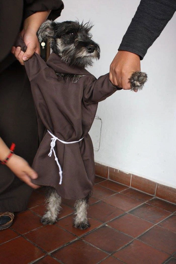 Молодой шнауцер по кличке Кармело поселился во францисканском монастыре боливийского городка Кочабамба совсем недавно и быстро полюбился всем местным монахам. На фотографиях, облетевших Интернет, пёс в монашеских одеждах бегает по монастырю, играет и охотно позирует на фотосессиях. Кармело стал своего рода талисманом обители, поскольку Франциск Ассизский является покровителем животных у католиков.