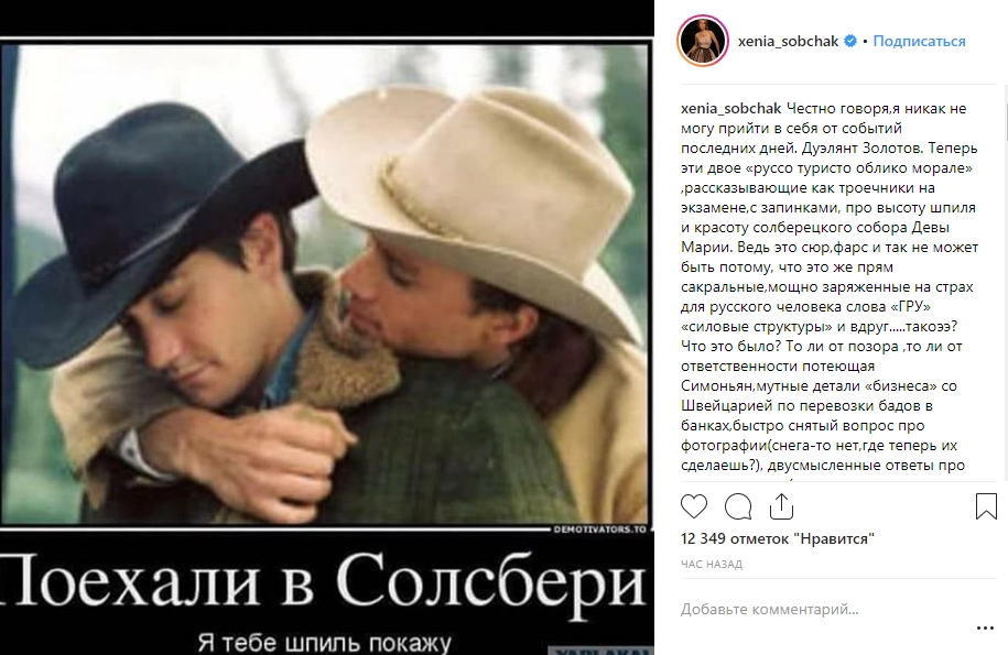 В заключительной части поста Ксения Собчак представила свои варианты объяснения ответов Петрова и Боширова, которые самой телеведущей, по ее словам, не показались достаточно убедительными.