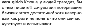 «Ксения за детей прячется, что на мусорке, что здесь пиарится, что еще хуже. Бросилась машины пересчитывать», «Все соболезнуют. А она тут про народ, про начальников… тут трагедия… а не выборы или дебаты», «Строить свою политическую карьеру и делать дешевую политкампанию на человеческой трагедии, на мой взгляд, это мерзко», — отреагировали пользователи Сети.