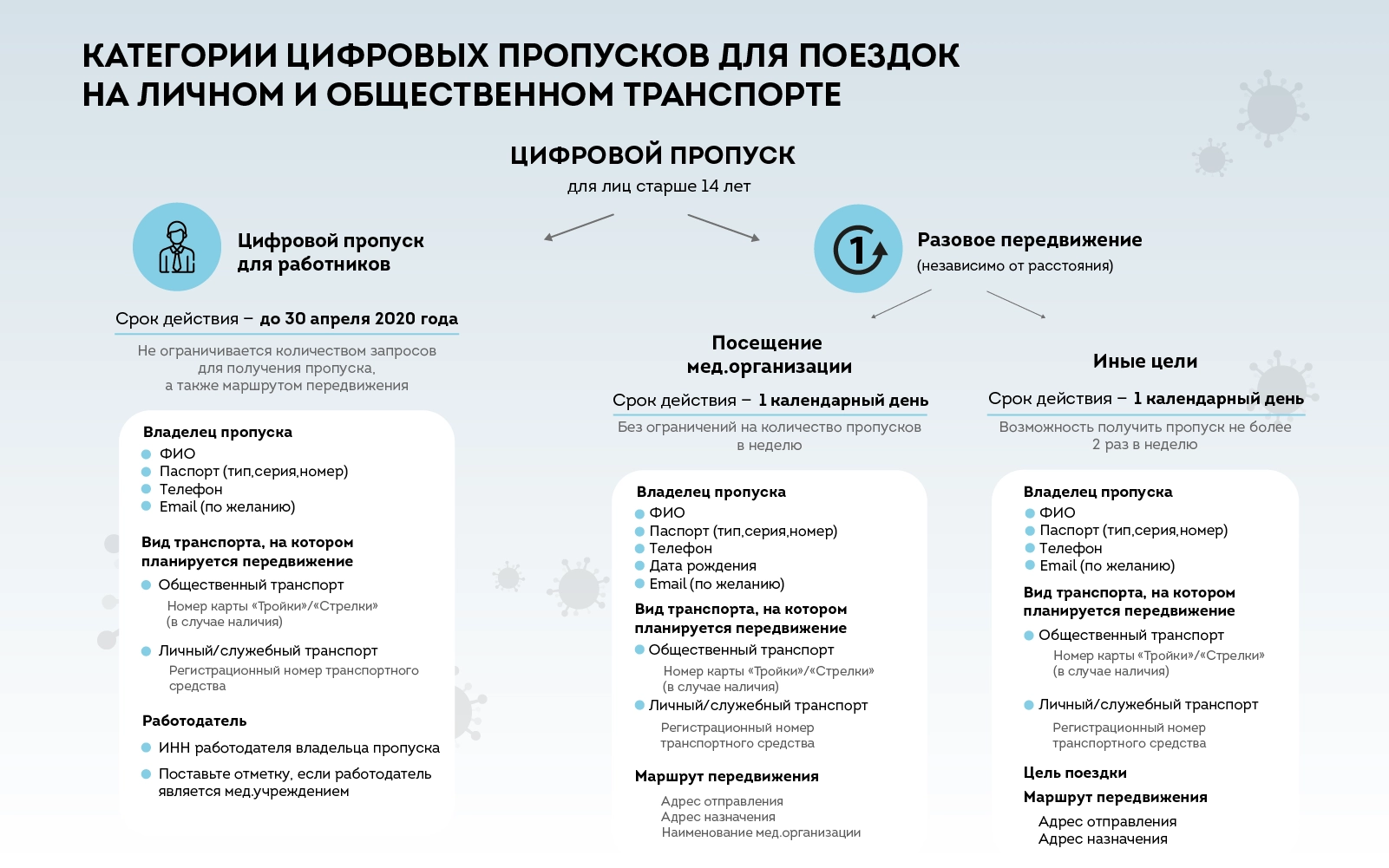 Пропуска будут трех видов — для поездок на работу до 30 апреля, в медучреждение и по личным делам на один день. Последний из них можно будет получить только два раза за неделю.