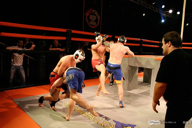 То, что я увидел вчера, впервые посетив «Hip Show», не шло ни в какое сравнение с прочими спортивными единоборствами. Просто расскажу рецепт: берете бокс, круто замешиваете его на всех видах борьбы, добавляете часть восточных боевых искусств и умение биться в команде на широком пространстве от регби. Заливаете это все соусом из непрекращающихся прыжков с каната в сторону противника по типу «Форта Боярд» и доводите до кипения на полном огне силы духа «русской стенки». Смотреть не больше часа – далее наступают необратимо-положительные процессы в мозгу и полная «хип-шоу-зависимость».