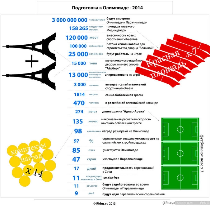 Инфографика: "Подготовка к Олимпиаде - 2014". Увеличить изображение. © Оля Манолова/Ridus.ru