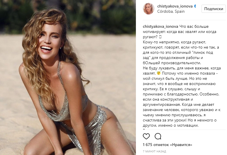 Певица Глюкоза, отдыхающая с семьей в Испании, устроила для своих поклонников опрос. Ее интересовало, что больше мотивирует подписчиков, — похвала или критика.