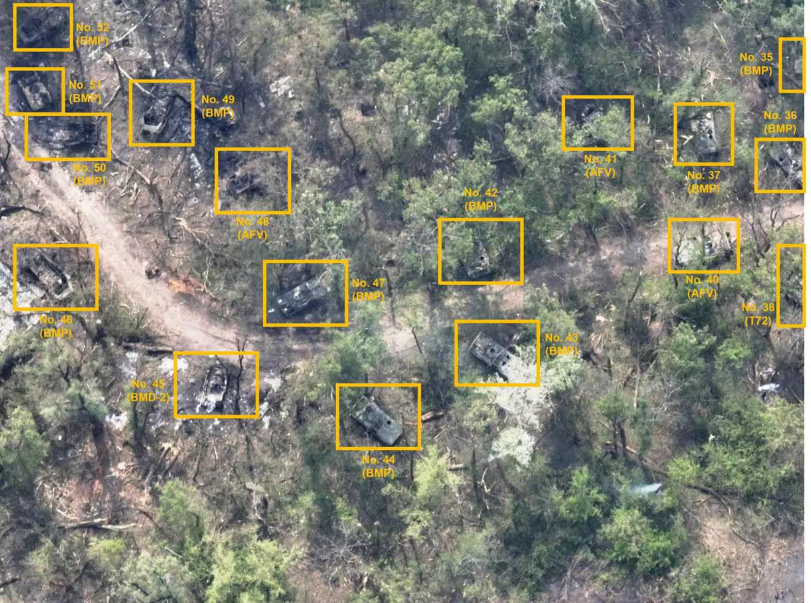 Украинская армия атаковала, когда подразделения ВС РФ собирались форсировать Северский Донец по понтонной переправе. В результате были уничтожены 73 единицы военной техники, включая танки, бронетранспортеры, бронемашины пехоты, грузовики и машины для наведения переправ.