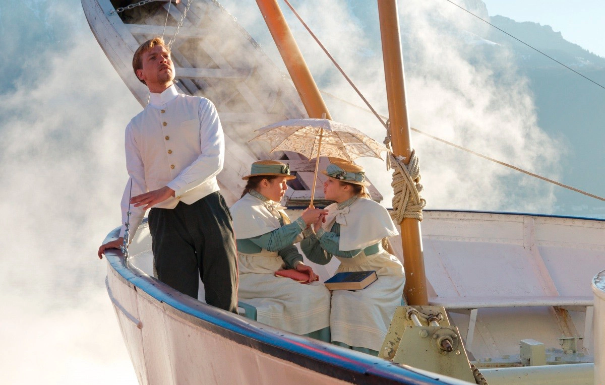 Да, ещё, конечно, мы увидим уже в самой концовке растянувшиеся по речному пейзажу слова «Фильм Никиты Михалкова». Кстати, о пейзажах. Они в этой ленте, пожалуй, наиболее привлекательны. Пару лет назад я въехал в родовой для меня город Гороховец - и случайно оказался на торговой площади начала ХХ века. Вокруг были керосиновые фонарные столбы, имитация прилавков и старых витрин, бутафорская мостовая, другие декорации, олицетворяющие предреволюционное время. Тогда я и узнал, что идут съёмки фильма по Бунину.