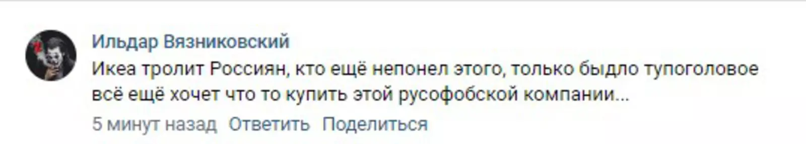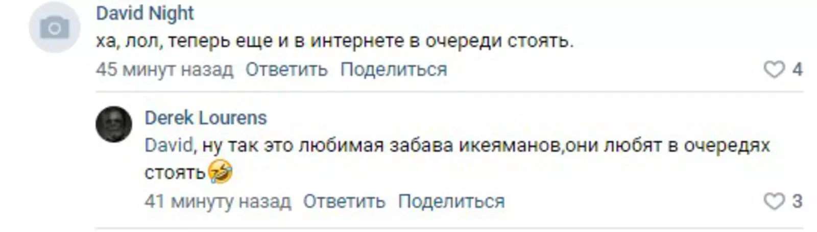 Пользователи Рунета в основной массе восприняли необходимость стоять в очереди ещё и при покупках онлайн как изощрённое издевательство над потребителем. Комментаторы в соцсетях шлют проклятия на голову IKEA и обвиняют её в намеренном троллинге покупателей из русофобских соображений.