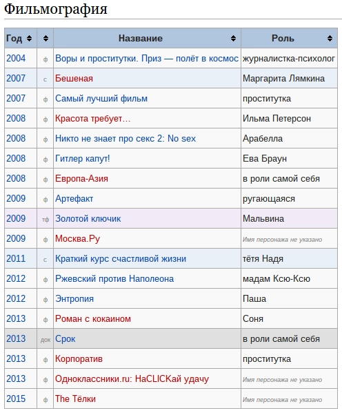 Оставим за собой право не судить об актерских талантах Собчак, посвятившей себя второстепенным ролям во второсортных комедиях. Но ее официальная фильмография говорит уже о многом: подсчитайте на досуге, сколько раз в ней упоминается слово «проститутка».