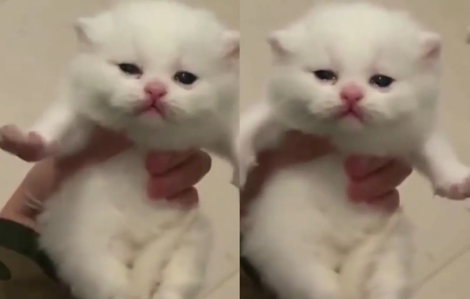 Обычно котята очень активные и непоседливые, но этот милый шерстяной комочек не выспался, и поэтому у него совсем не было сил на то, чтобы вырываться из цепких рук владельца. Сонный маленький котофей стал медленно двигать лапками, пытаясь оказать хоть какое-то сопротивление, и в итоге у него получился очаровательный медленный танец.
