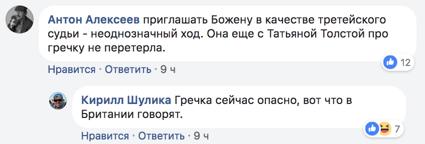 «Ну и совет да любовь. Чо уж тут. Но деньги верните, ребят», — заключила Баронова. А в комментариях до сих пор продолжается конкурс на самую колкую остроту по поводу публичного конфликта.