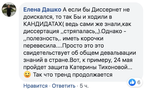 Я восхищен! Т. е. Дмитрий Некрасов, будучи чиновником в администрации президента, «как все» купил себе диссертацию, и тихо себе сидел и не жужжал, пока его не накрыл Диссернет. А что еще Дмитрий делал «как все», будучи чиновником? Что он будет делать «как все», если когда-нибудь станет депутатом или опять чиновником? Единственное, что Дмитрий сделал, это не стал отпираться! Все! Признался он только потому, что его уличили в этом, а не потому, что такой порядочный. Не уличили, так до сих пор бы и ходил в кандидатах наук. И отлично бы себя чувствовал. Так в чем поступок? — спрашивают комментаторы.