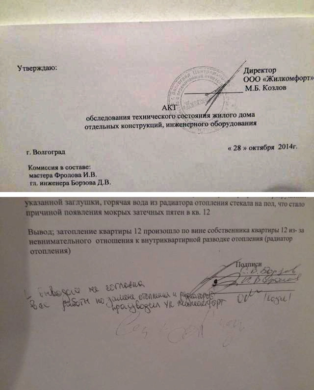 Три экспертизы показали разные результаты. Одна — что авария произошла из-за бракованной батареи. Другая — что в ЧП виноваты сантехники, неправильно установившие радиатор. Но ситуация осложняется еще и тем, что компании «Жилкомфорт», занимавшейся установкой, уже нет. Вместо нее теперь «Уютный город». По словам Ольги, УК находится по тому же адресу — улица Порт-Саида, 17 — и работают в ней те же люди. Но «новые» сотрудники отказываются нести ответственность за старое юрлицо.