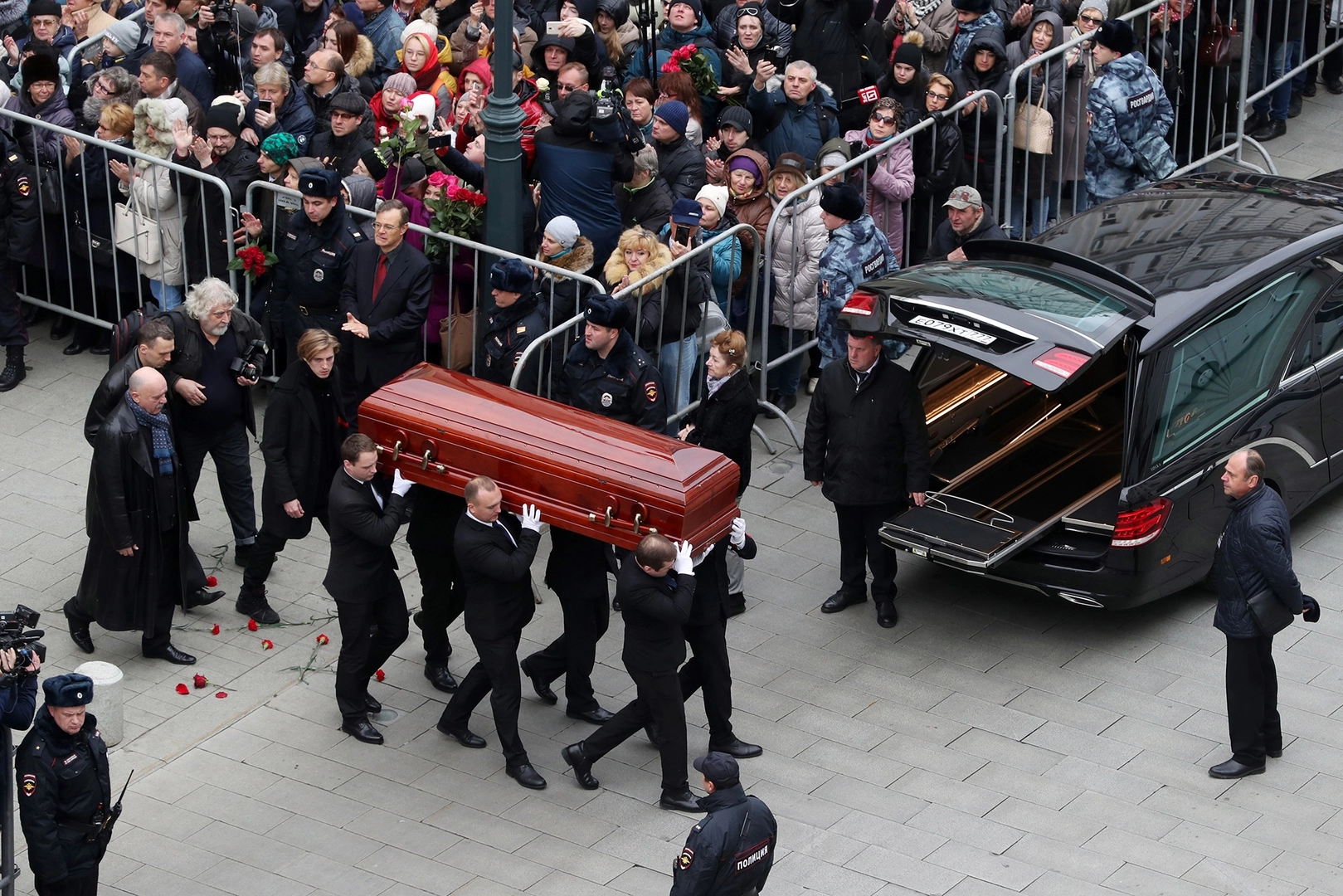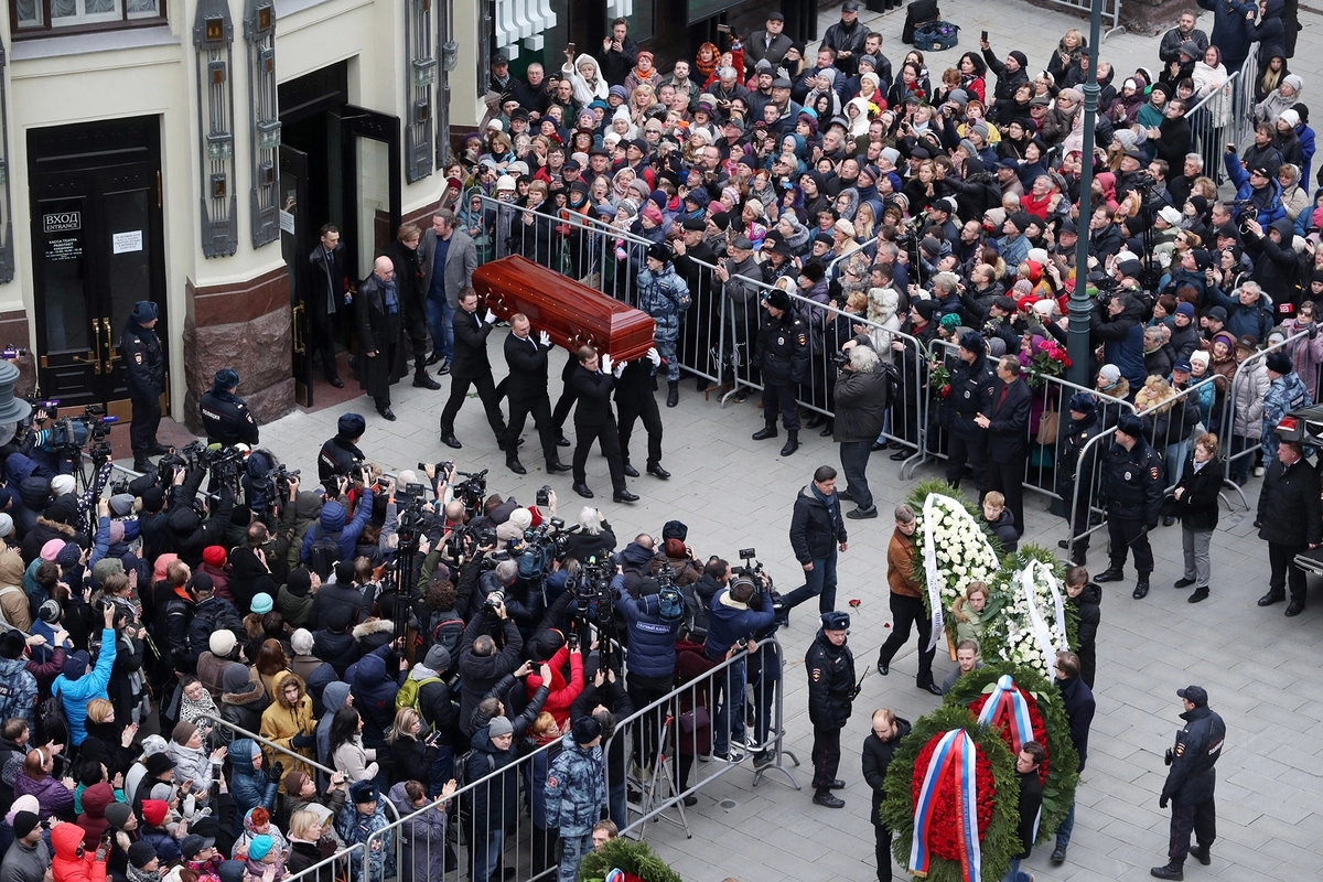 Проводить Караченцова в последний путь пришли родные, коллеги, многие знаменитости и поклонники.