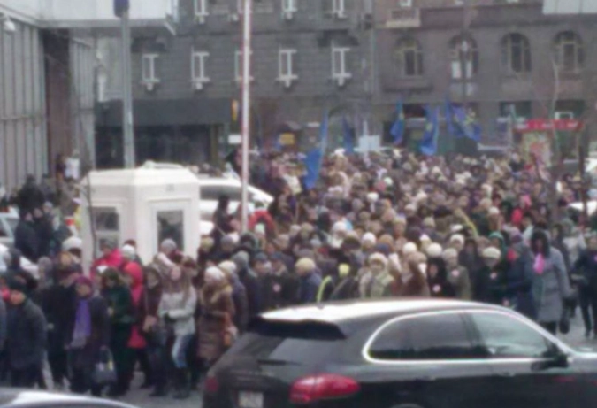 Как сообщает украинское новостное агентство УНН, колонна митингующих направляется от майдана Незалежности (площади Независимости) к зданию Верховной рады Украины, скандируя «революция».