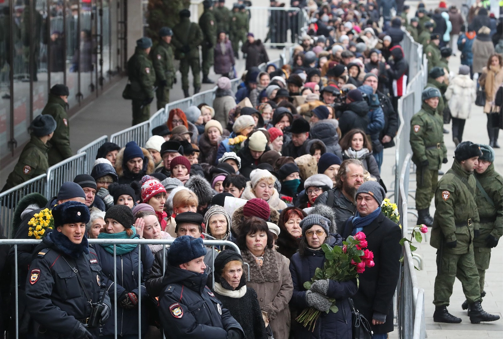 В Московской филармонии проходит церемония прощания с оперным певцом Дмитрием Хворостовским. У входа в здание собрались сотни его поклонников с цветами. На здании филармонии — баннер с портретом Хворостовского и словами «Навсегда с нами».