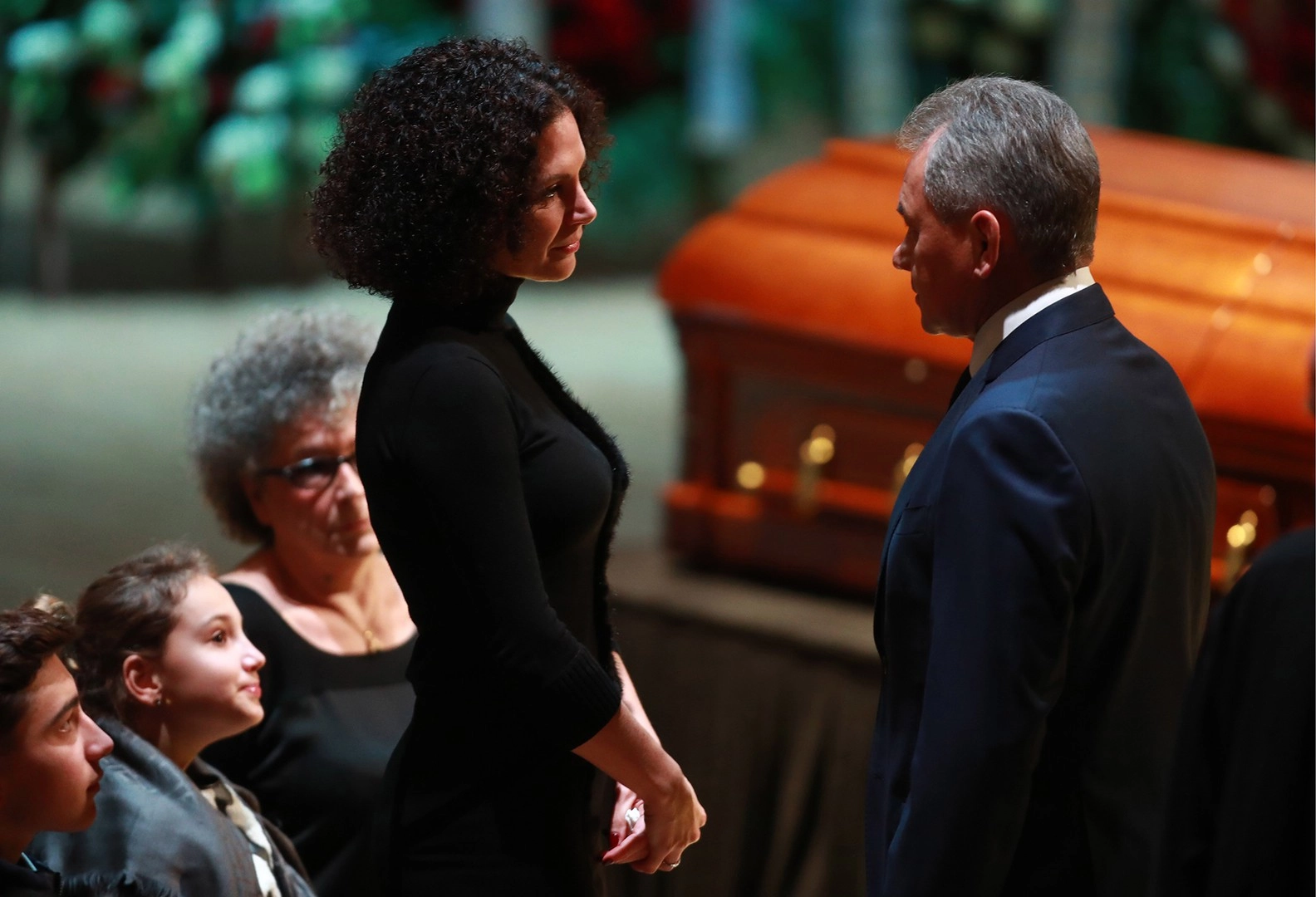 Вдова Д. Хворостовского Флоранс и министр обороны РФ Сергей Шойгу на церемонии прощания с оперным певцом Дмитрием Хворостовским в Концертном зале имени П. И. Чайковского