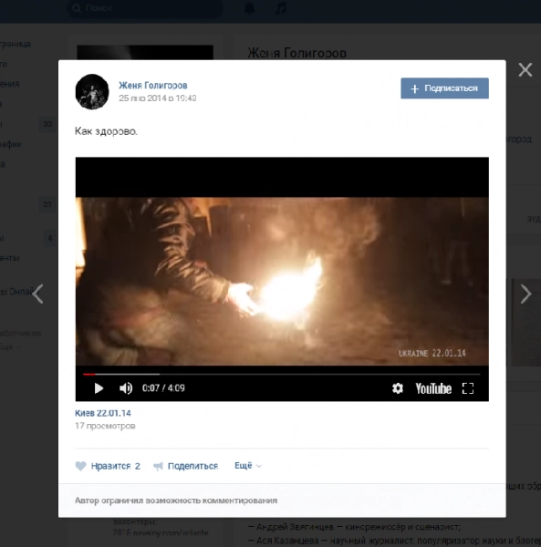Евгений Голигоров, ответственный за SMM в «избирательном штабе» блогера Алексея Навального в Нижнем Новгороде, оказался убежденным сторонником идеологии «майдана», сообщает портал «Команданавального.рф».