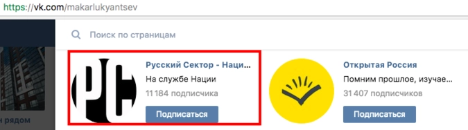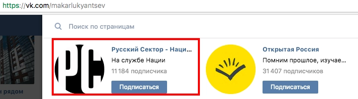 Среди подписок сотрудника Навального обнаружились и информационные ресурсы националистического толка, в частности — «Русский Сектор — Национальная Служба Новостей».