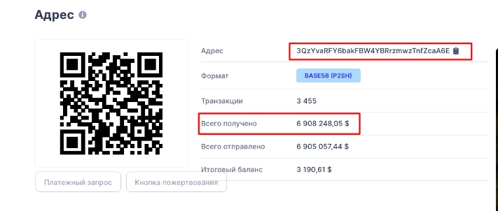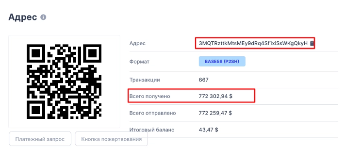 Таким образом, за четыре года по двум кошелькам прошло суммарно 7,7 миллионов долларов — это порядка 490 миллионов рублей.