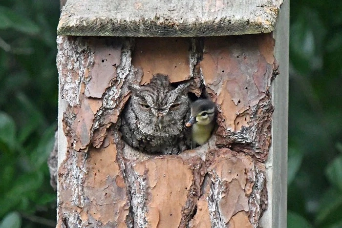 Сова воспитывает утёнка, приняв его яйцо за своё