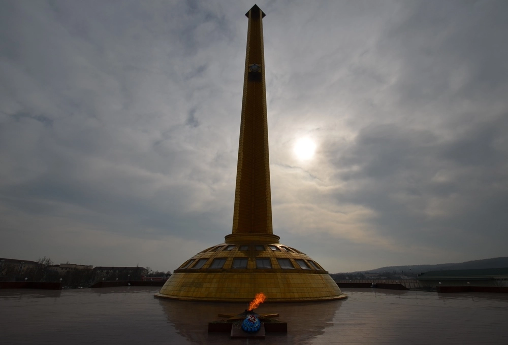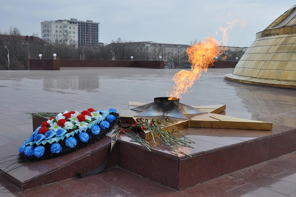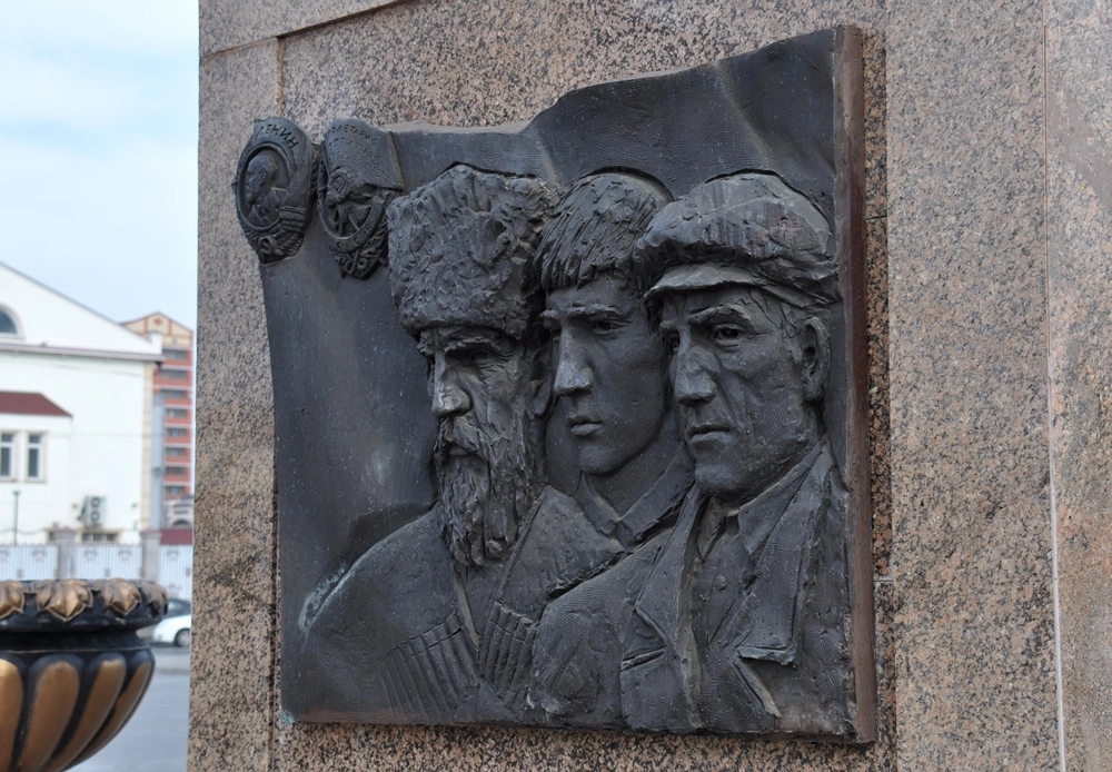 Перед зданием мэрии в честь присвоения Грозному почётного звания «Город воинской славы» установлена стела с барельефами.