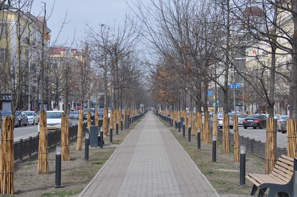 Я останавливался в небольшой частной гостинице «Городок» — это на улице Назарбаева примерно в двух километрах от центра. Полчаса прогулки весенним утром — и мы на площади Абубукара Кадырова, центральной площади города.
