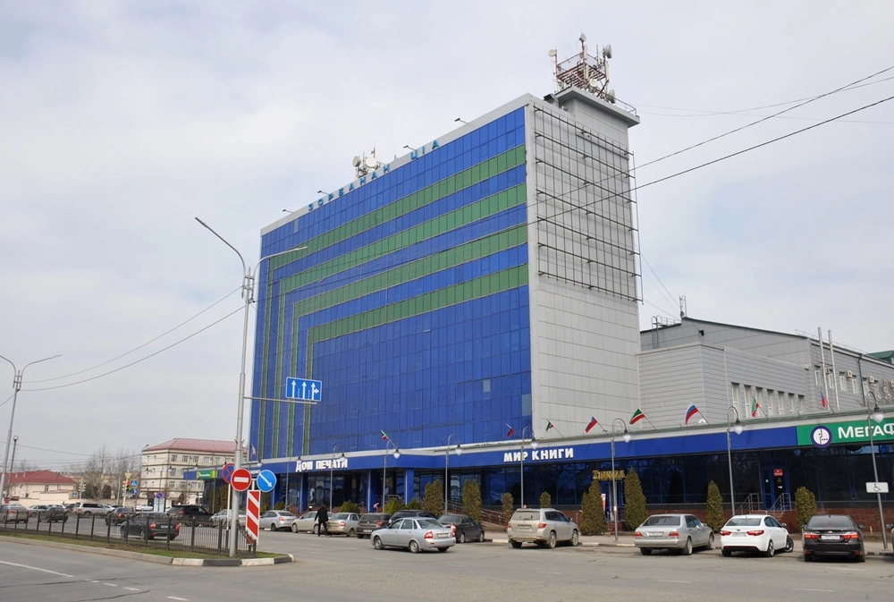 Дальнейший путь — по улице Сайпуддина Лорсанова вдоль павильонов огромного рынка «Беркат» к зданию «Дом Печати».
