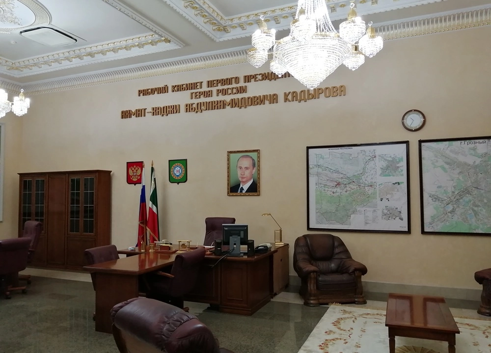 В музее воссоздан кабинет Ахмата Кадырова, все вещи и принадлежности — оригинальные. А на письменном столе — последний указ президента, подписанный незадолго до его гибели 9 мая 2004 года.