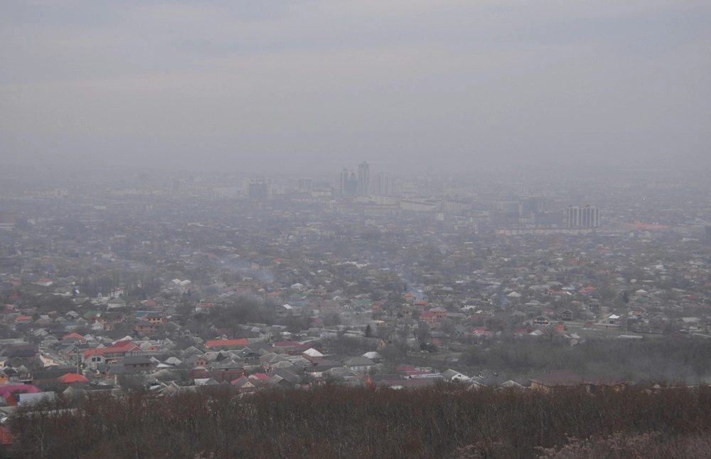На одном из окрестных холмов недавно появилась смотровая площадка «Лестница в небеса», откуда Грозный виден как на ладони. Правда, не сегодня — к вечеру на город окончательно опустился туман… :)