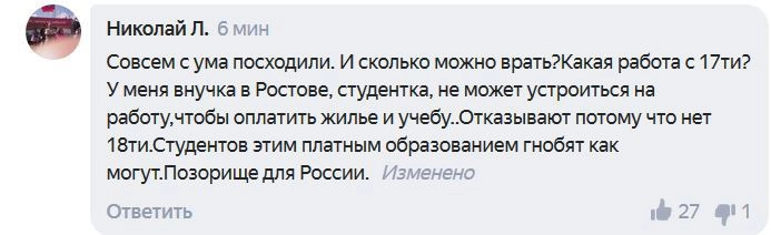 Несмотря на заявление депутата, некоторые россияне рассказывают, что их несовершеннолетние дети не могут устроиться на работу, так как им нет 18 лет.