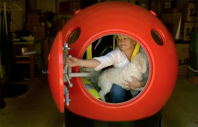 Капсула сделана из авиационного алюминия, она сферическая и водонепроницаемая, что обезопасит человека почти ото всех катаклизмов.Такая конструкция не может затонуть и всегда будет оставаться на поверхности воды, также внутри нее поддерживается постоянная температура, которую можно регулировать.