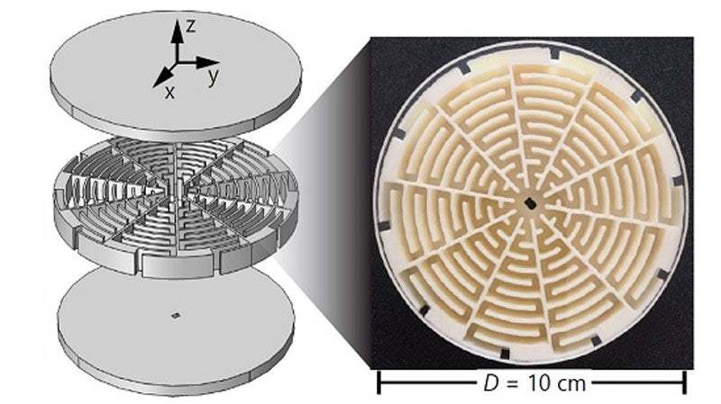 Специалисты из университета KAUST (King Abdullah University of Science and Technology), расположенного в Саудовской Аравии, нашли решение этой проблемы. Они напечатали на 3D-принтере пластину, которая похожа изгибами на «лабиринт» и позволяет увеличить громкость звука почти в 200 раз. Главное ее преимущество — миниатюрность, поэтому она подойдет даже для самых маленьких устройств.