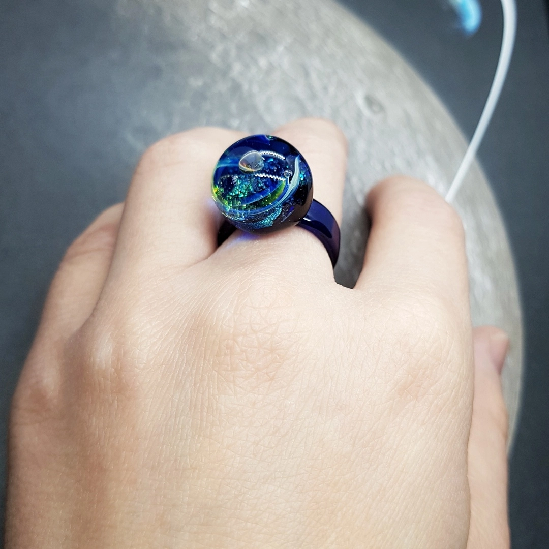 Особенно девушке нравится создавать кольца из стекла. По её мнению, они очень приятные на ощупь и свет на них красиво играет. Но здесь важно только помнить, что стекло есть стекло, поэтому оно может разбиться. Все кольца, которые носит Евгения, до сих пор целы, но лучше их, конечно, не ронять и за штангу в них не хвататься.