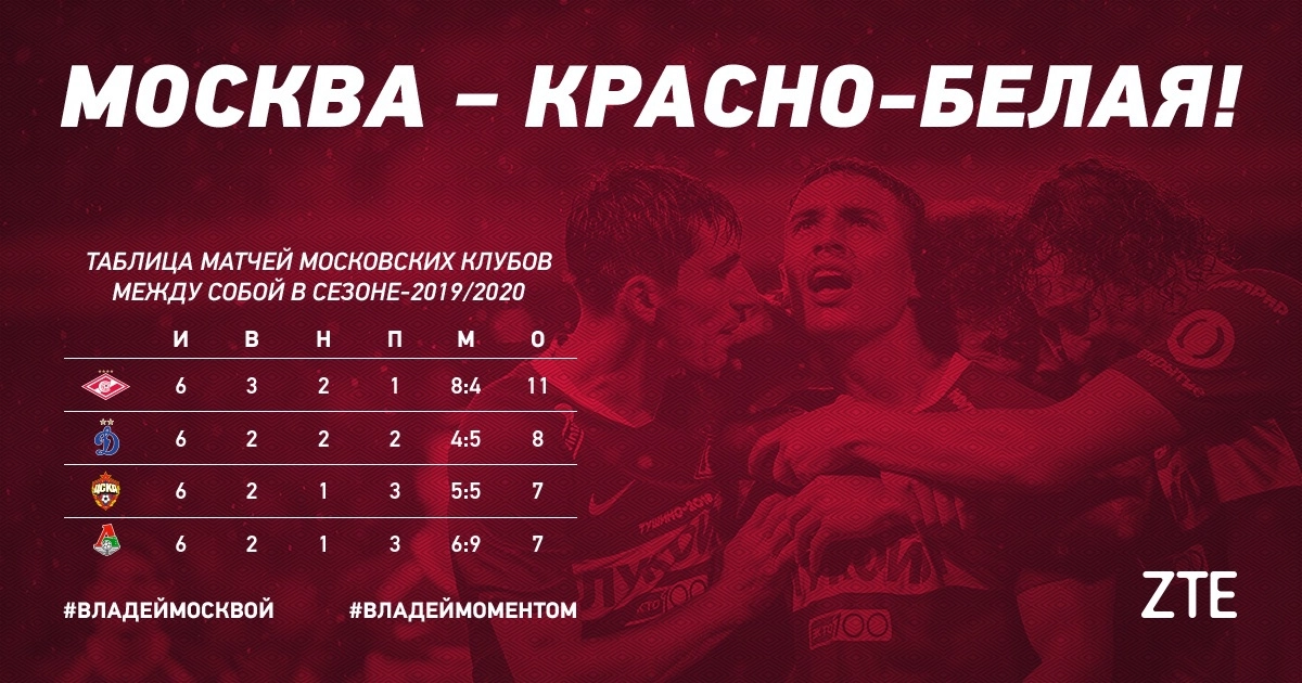 В Twitter московского «Спартака» опубликована турнирная таблица, в которую включены результаты всех матчей чемпионата России между московскими клубами.