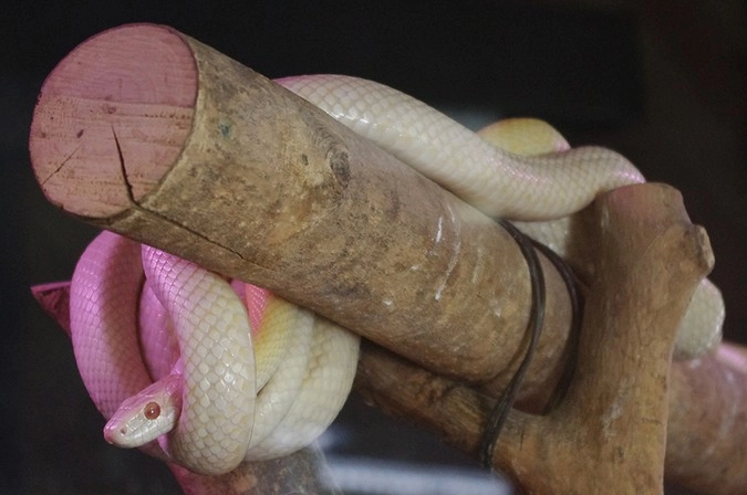 Происшествие произошло на улице Киевской. Змея пряталась между первым и вторым подъездом дома № 112. Каким образом белая змея оказалась во дворе московского дома, пока не установлено.