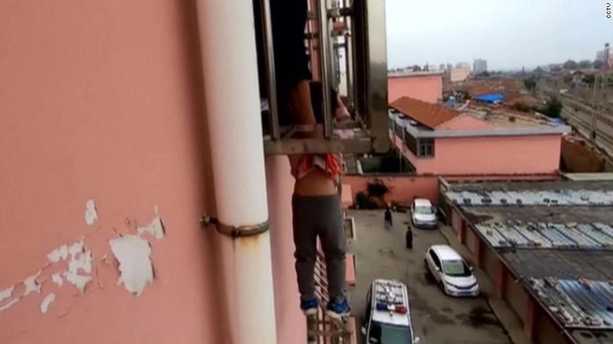 В китайской провинции Шаньдун был спасен мальчик, застрявший головой в оконной решетке на высоте четвертого этажа.