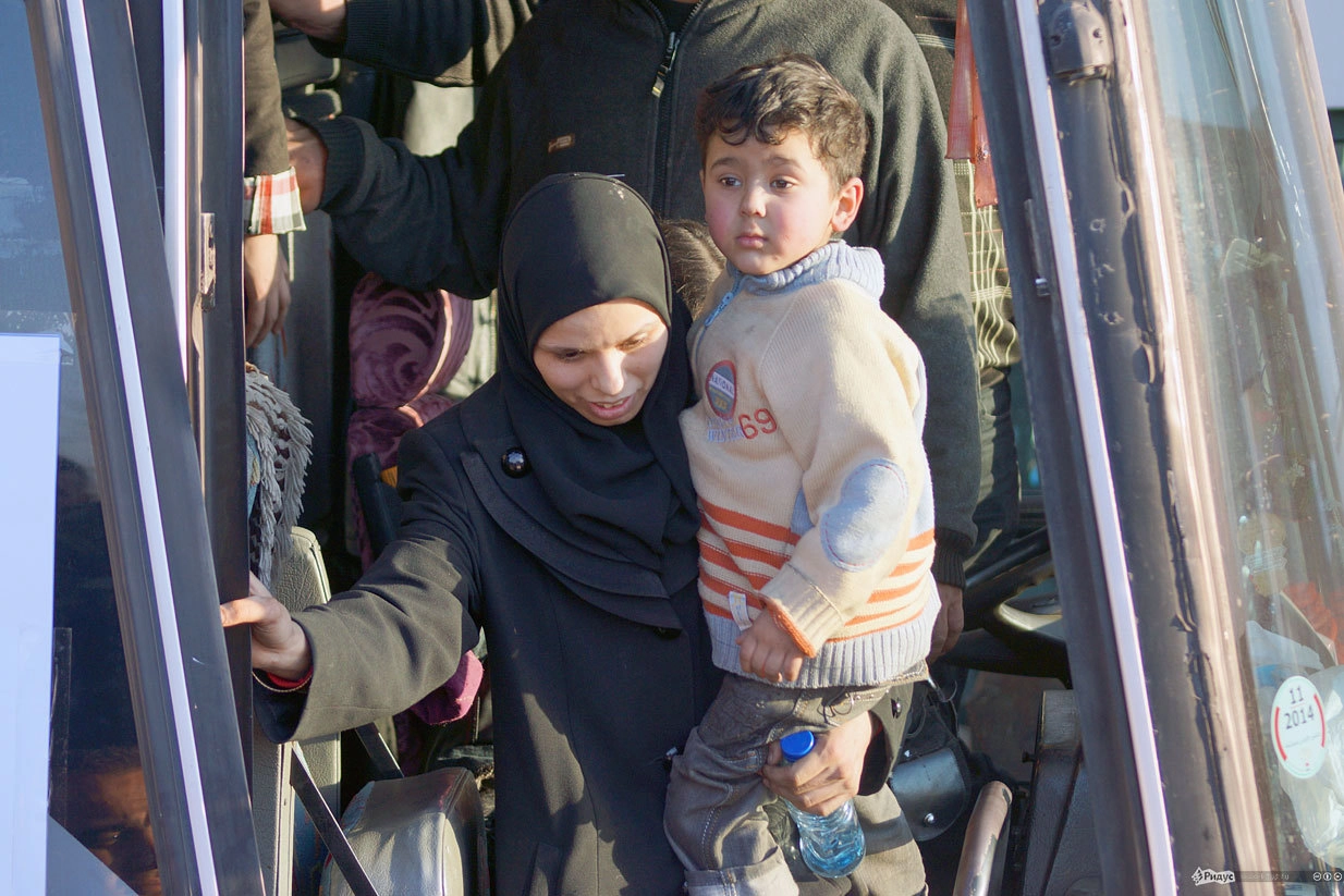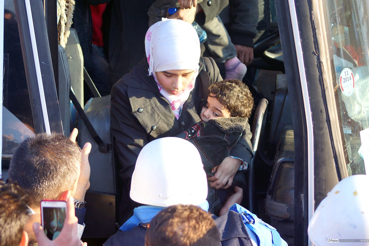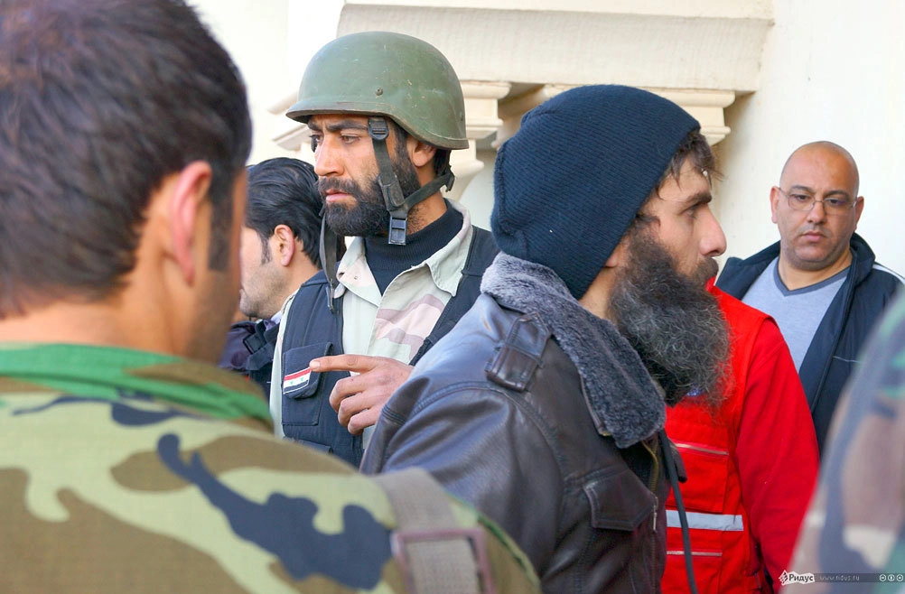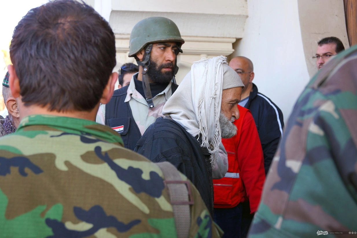 И вот они – два первых автобуса. Проносится слух, что вывезли около 60 человек. Делаем несколько снимков и торопимся занимать места у здания, в котором будут принимать людей. На массивных стилизованных под старинные деревянных воротах бумажка с надписью от руки: запрещен вход военным, журналистам и тем, кто журналистов сопровождает (среди нас несколько иностранцев, не говорящих на арабском). У военных тут свой интерес: они не только охраняют нас и готовы отразить любую попытку прорыва боевиков, но и внимательно изучают всех, вновь прибывших. Позднее несколько прибывших людей указывают на четверых мужчин явно бандитской внешности: это самые настоящие боевики. Согласно существующему уговору, безоговорочной амнистии подлежат лишь женщины, мальчики в возрасте до 14 лет и мужчины в возрасте свыше 54. Все остальные, в случае, если решат выйти из блокированного района, будут подвергнуты проверке правоохранительных органов. Предложение не настолько плохо: в любом случае, если боевик сдался сам, он подлежит частичному амнистированию и понесет наказание менее того, которое заслуживает. А это значит, что есть шансы вернуться на свободу. А там, в Старом Хомсе – однозначная смерть.