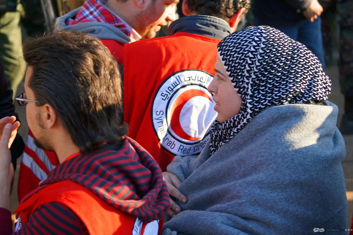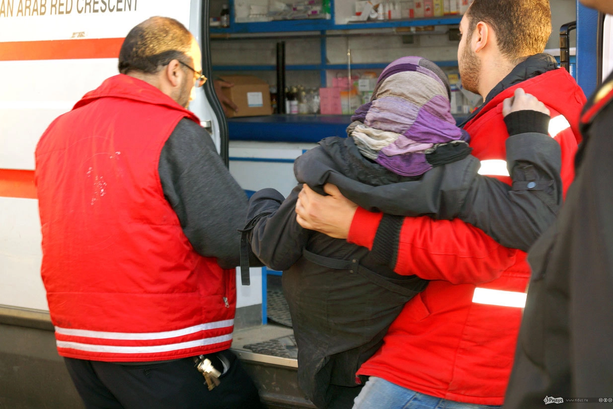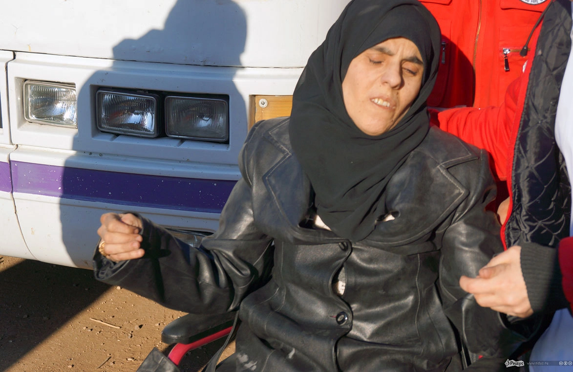 Темнеет. А люди все продолжают и продолжают выступать. Теперь их привозят не только на автобусах, но и на чем придется: на джипах «Красного полумесяца» и ООН, на скорых, на каких-то армейских пикапах. Машины буквально набиты людьми. Главное – успеть эвакуировать как можно больше. Забегая вперед, скажу, что это было правильно: в понедельник и во вторник никого вывести уже не удалось. Несмотря на продленное на новые три дня перемирие.