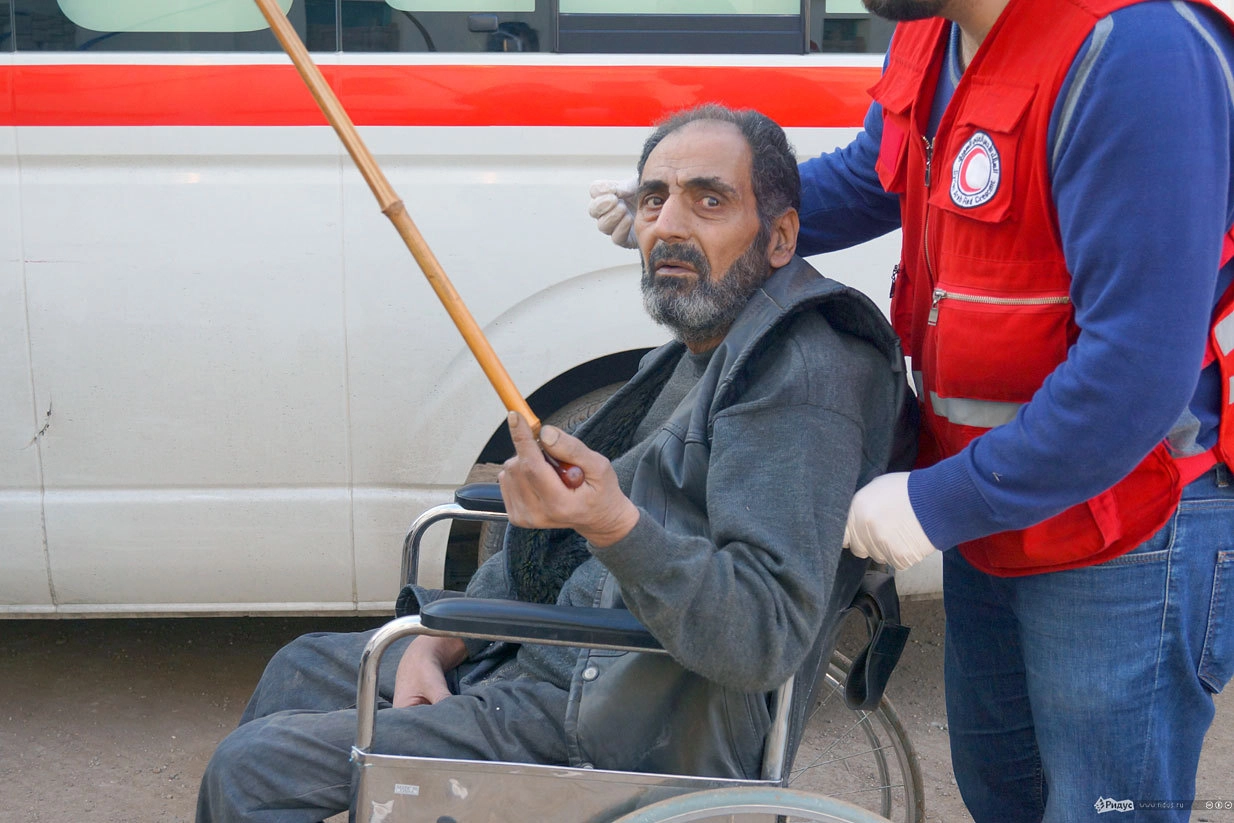 По моим подсчтам, людей, не могших самостоятельно передвигаться, было около 15 человек.
