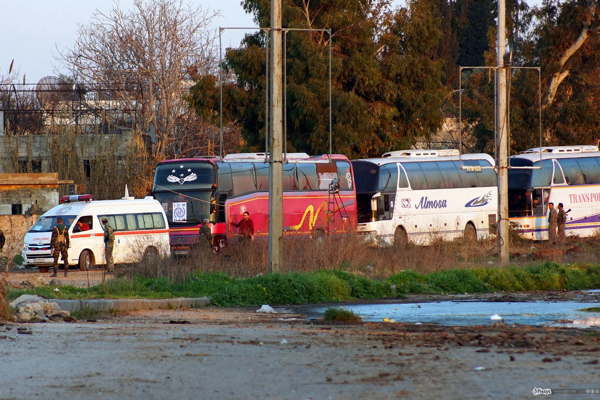 Мы пробыли в районе Дик аль-Джинн до 7 вечера. Регистрация поступивших еще продолжалась. Те, кто ее прошел, ожидали вывоза к местам временного размещения уже сидя в автобусах. На контролируемой боевиками территории по приблизительным подсчетам может находиться еще около 300 гражданских лиц, желающих выйти. Христиане из Старого Хомса тоже так пока и не вышли.