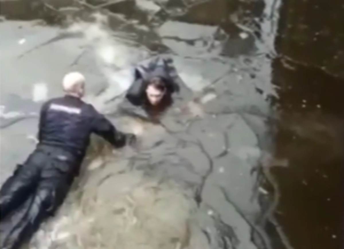 Спасение полицейскими провалившегося под лед мужчины попало на видео