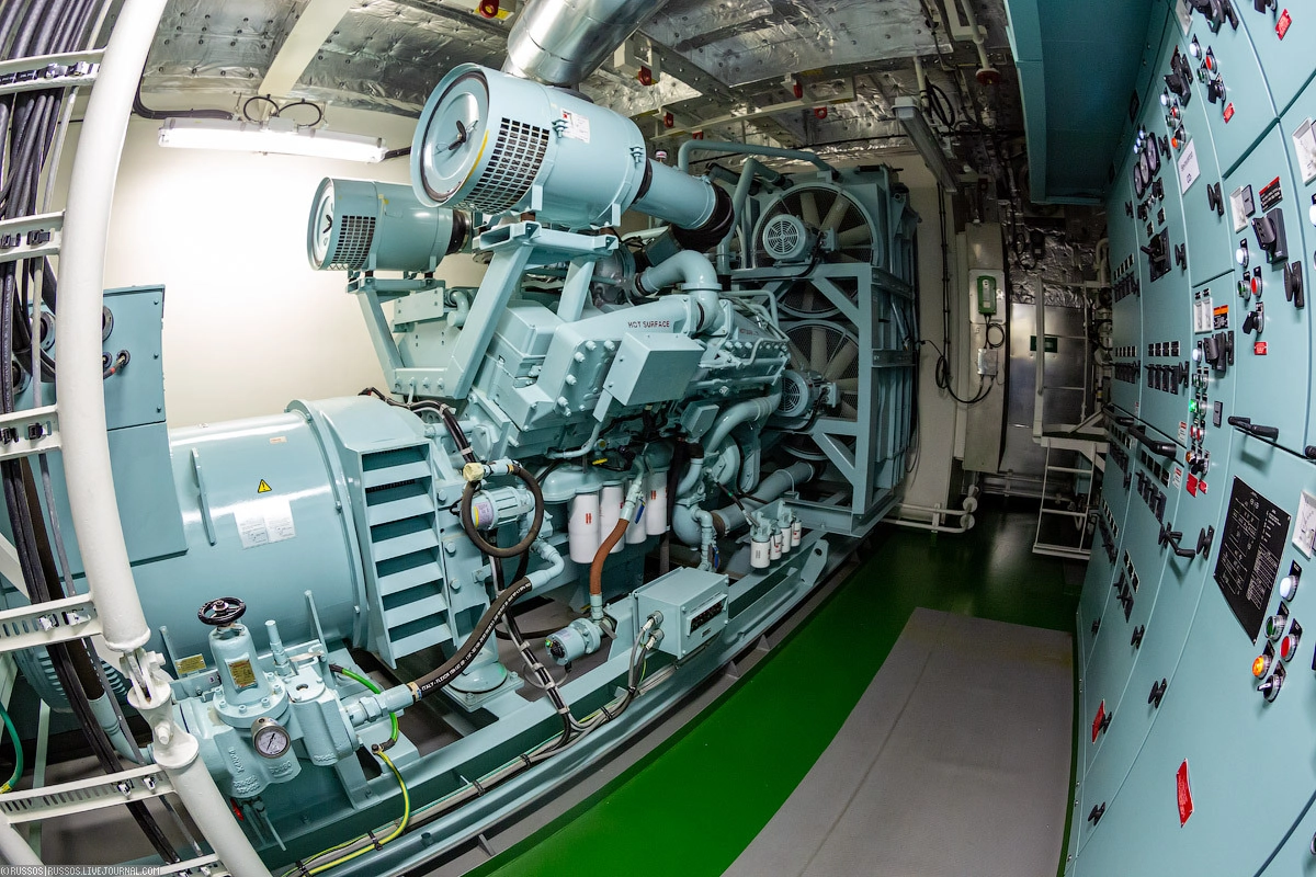 Если машинное отделение выйдет из строя, то электричество будет вырабатывать аварийный дизель-генератор. Он устанавливается в надстройке, чтобы мог работать при почти полном затоплении судна.